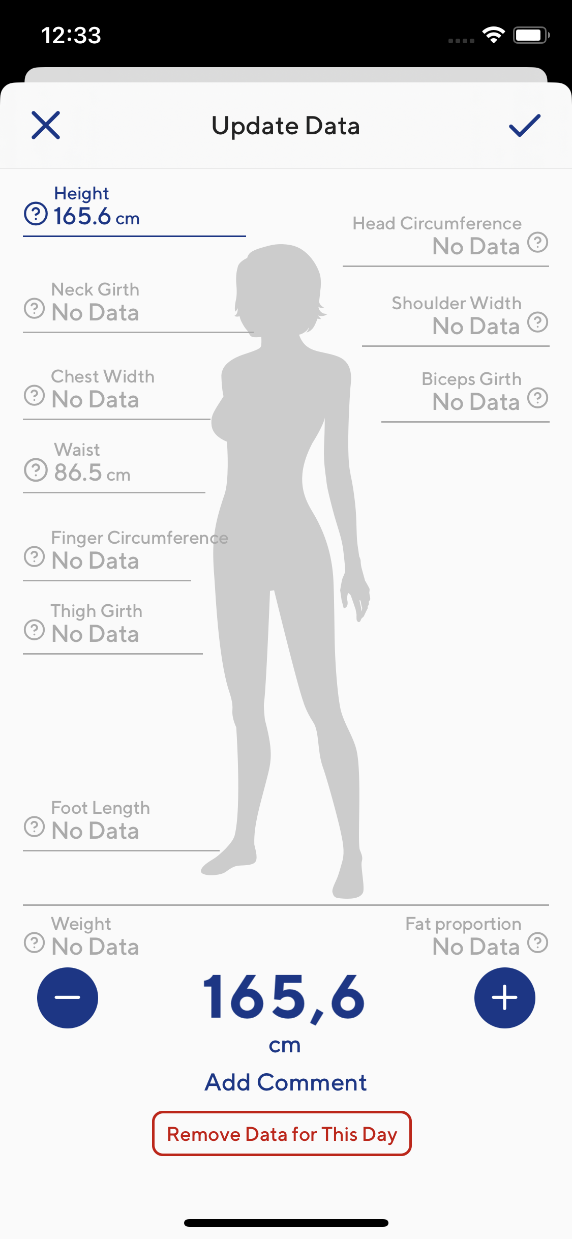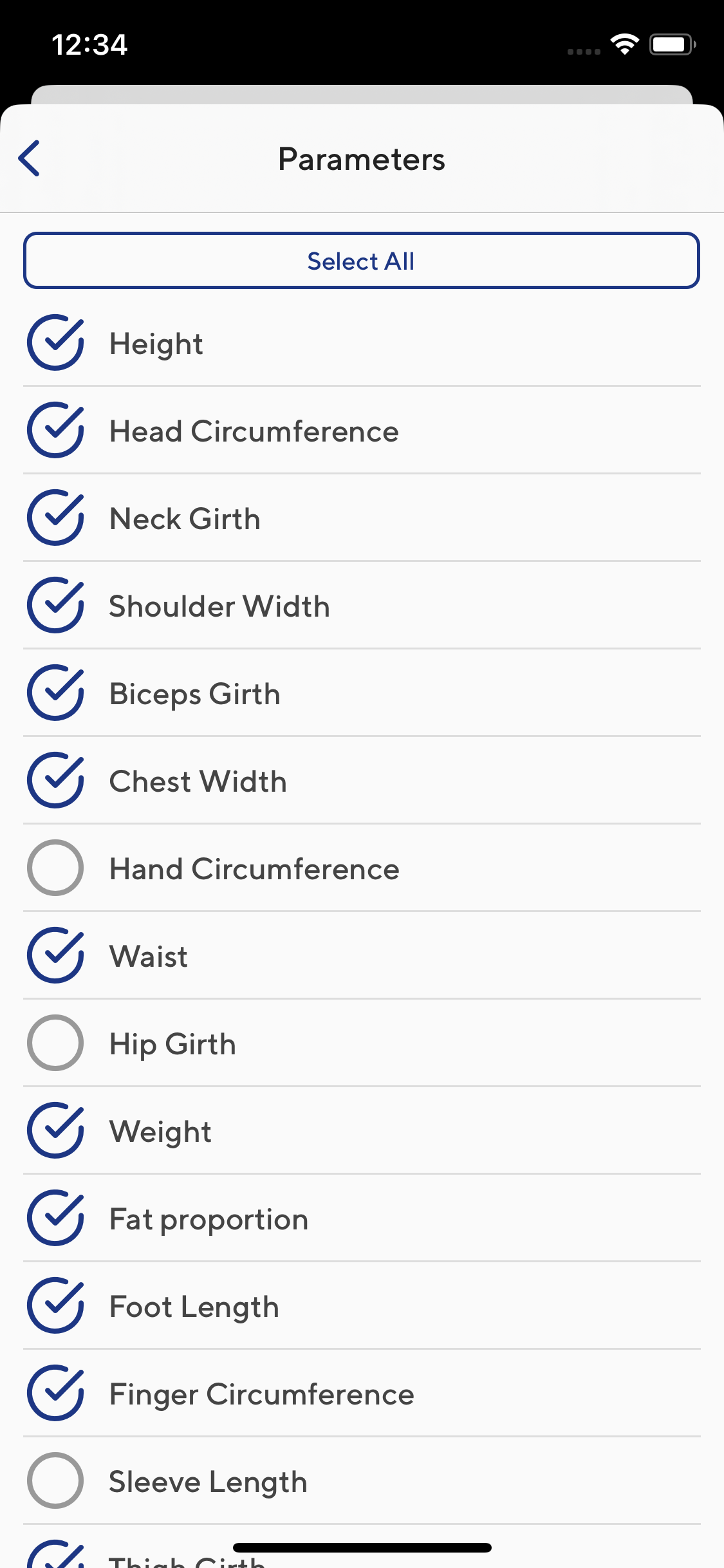 Entito support 17 kinds of anthropometric and sewing measurements.