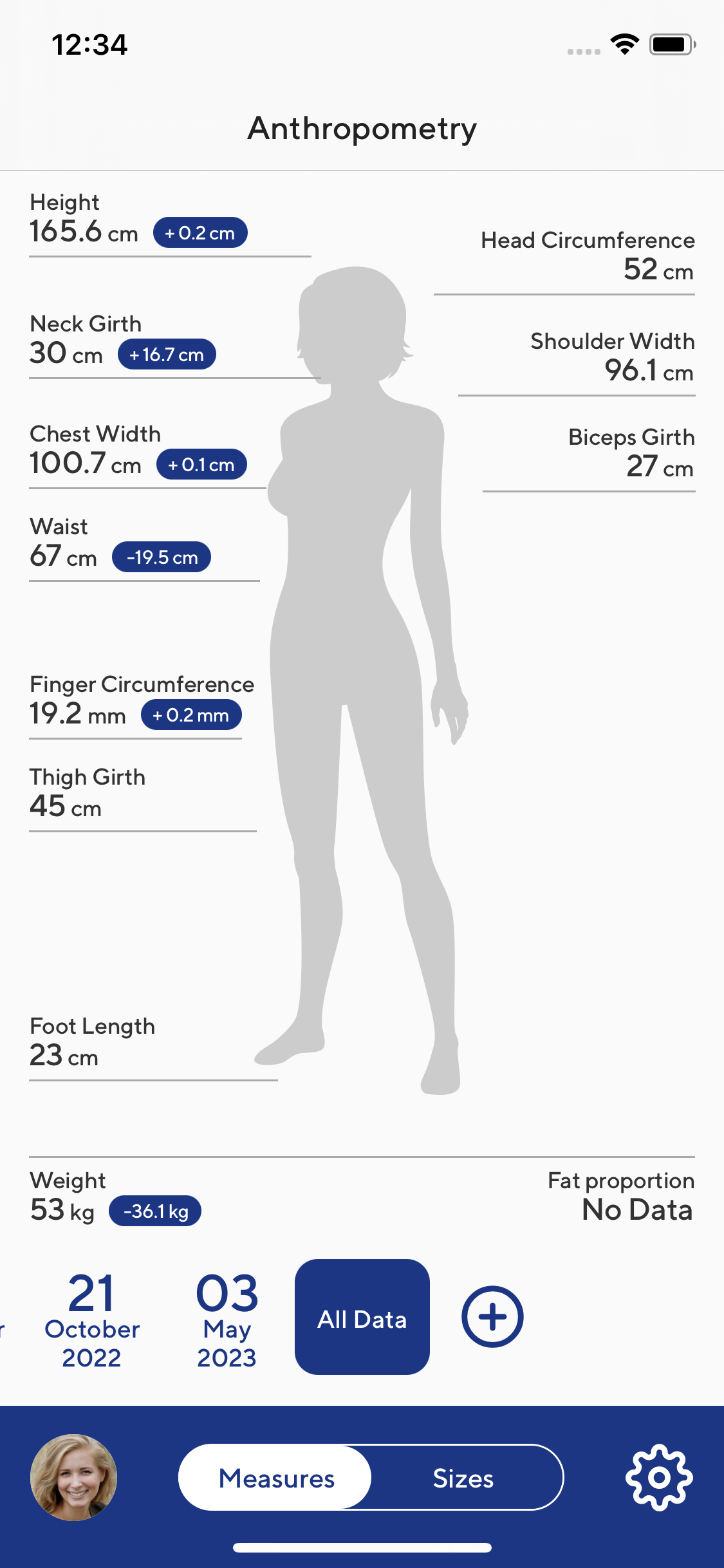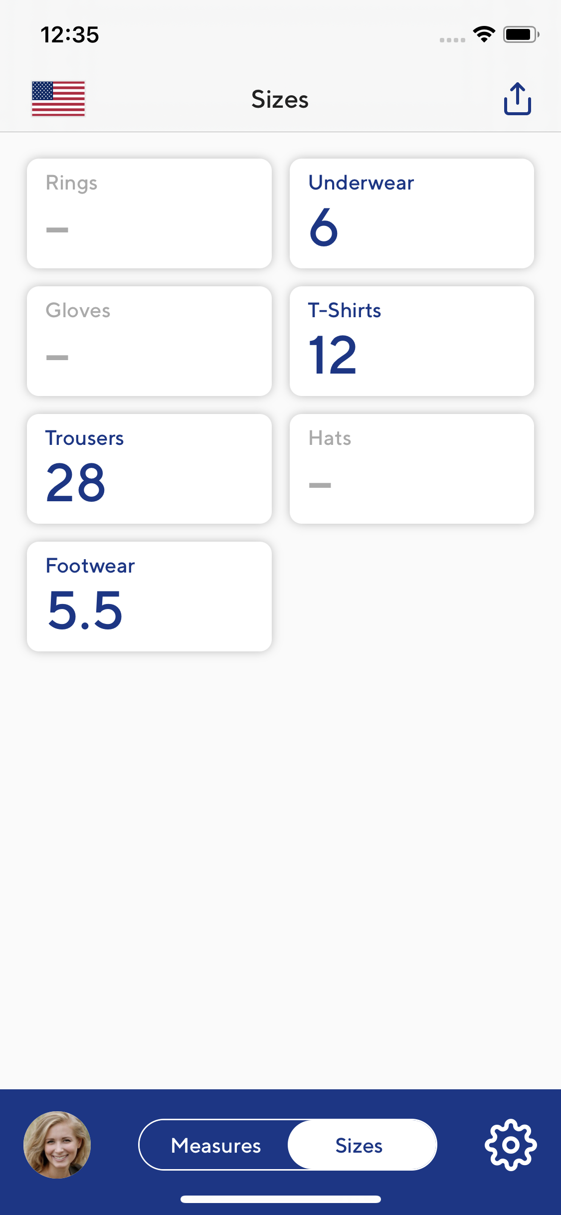 On the dedicated Sizes tab, you'll see your sizes for clothes and shoes.